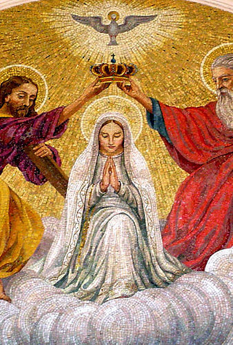 Illustration: Mosaïque du couronnement de la Vierge Marie par la Sainte Trinité, basilique Notre-Dame du Rosaire, Fatima
