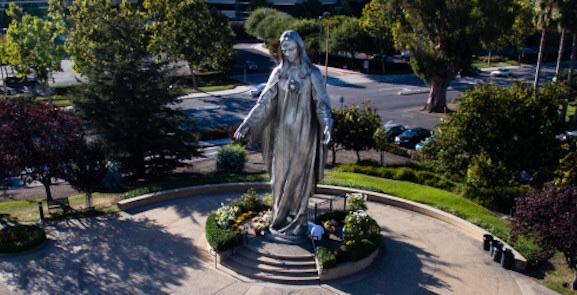 Si vous traversez le diocèse de San José en Californie, vous y découvrirez une expression à la fois inhabituelle et impressionnante de la foi catholique: une statue en acier inoxydable de 9 mètres de hauteur représentant le Cœur Immaculé de Marie, située à côté de l’église et du sanctuaire de Notre-Dame de la Paix à Santa Clara. Cette statue attire plus d’un million de visiteurs chaque année et a été à l’origine de la création de trois autres grandes statues similaires à travers les États-Unis.