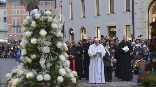 Pour cela, ô Vierge Marie, aujourd’hui, je te confie tous ceux qui, dans cette ville et partout dans le monde, sont opprimés par la méfiance, par le découragement à cause du péché ; ceux qui pensent qu’il n’y a aucun espoir pour eux, que leurs fautes sont trop nombreuses et trop grandes, et que Dieu n’a pas de temps à perdre avec eux. Je te les confie, car tu n’es pas seulement une mère. et en tant que tel, tu ne cesses jamais d’aimer tes enfants, mais tu es aussi l’Immaculée, pleine de grâce, et tu peux refléter jusque dans les ténèbres les plus épaisses un rayon de lumière du Christ ressuscité. Lui, et Lui seul, brise les chaînes du mal, libère des addictions les plus avides, délie des liens les plus criminelles, adoucit les cœurs les plus durs. Et si cela se produit à l’intérieur des personnes, alors le visage de la ville change !