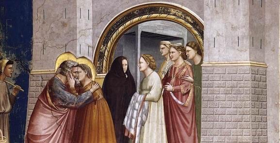 Je vis ensuite de nouveau tout ce qui concernait la grâce accordée aux parents de Marie, depuis l’apparition de l’ange à Anne et à Joachim, jusqu’à leur rencontre sous la porte dorée, de la manière que je l’ai toujours raconté. Sous la porte dorée, c’est-à-dire dans la salle souterraine qui était sous cette porte, je vis Joachim et Anne entourés d’une multitude d’anges qui brillaient d’une lumière céleste ; eux-mêmes resplendissaient, et ils étaient purs comme des esprits, se trouvant dans un état surnaturel où aucun couple humain n’avait été avant eux.