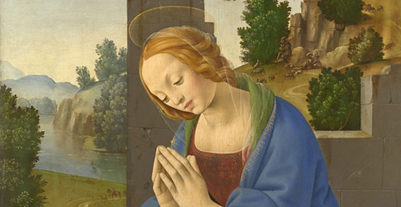 Prions : Je vous salue, Marie pleine de grâce ; le Seigneur est avec vous. Vous êtes bénie entre toutes les femmes et Jésus, le fruit de vos entrailles, est béni. Sainte Marie, Mère de Dieu, priez pour nous pauvres pécheurs, maintenant et à l’heure de notre mort. Amen.
