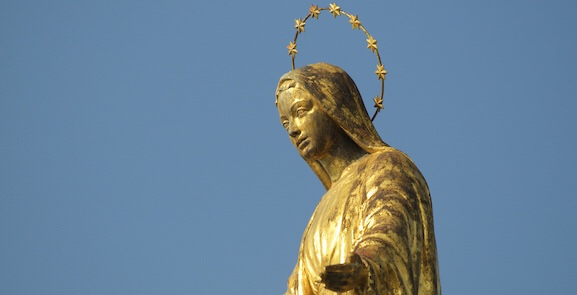 Prions : Je vous salue, Marie pleine de grâce ; le Seigneur est avec vous. Vous êtes bénie entre toutes les femmes et Jésus, le fruit de vos entrailles, est béni. Sainte Marie, Mère de Dieu, priez pour nous pauvres pécheurs, maintenant et à l’heure de notre mort. Amen.
