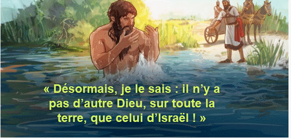 Il descendit jusqu’au Jourdain et s’y plongea sept fois, pour obéir à la parole de l’homme de Dieu ; alors sa chair redevint semblable à celle d’un petit enfant : il était purifié !