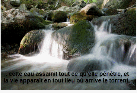 En tout lieu où parviendra le torrent, tous les animaux pourront vivre et foisonner. Le poisson sera très abondant, car cette eau assainit tout ce qu’elle pénètre, et la vie apparaît en tout lieu où arrive le torrent.