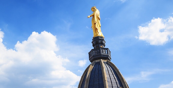Cette réplique de “La Vierge dorée”, qui trône au sommet de la basilique de Lyon a été inaugurée en décembre dernier à Leithfield près de Christchurch en Nouvelle-Zelande par Monseigneur Patrick Le Gal, évêque auxiliaire du diocèse de Lyon, et ancien recteur du sanctuaire de Fourvière.