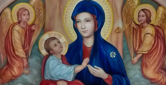 Le deuxième titre marial de la Vierge pour la ville de Rome est sûrement encore moins connu des catholiques qui vivent en dehors de Rome. La dénomination de « Mère du Divin Amour » – Madonna del Divino Amore – est associée à une église de campagne située à environ 19 km du centre historique de Rome.