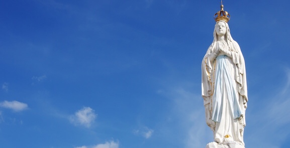 Prions : Je vous salue, Marie pleine de grâce ; le Seigneur est avec vous. Vous êtes bénie entre toutes les femmes et Jésus, le fruit de vos entrailles, est béni. Sainte Marie, Mère de Dieu, priez pour nous pauvres pécheurs, maintenant et à l’heure de notre mort. Amen.
