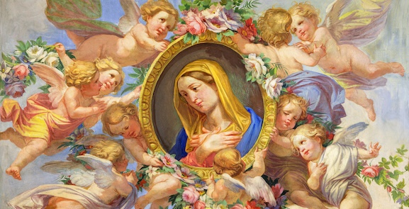 Prions : Je vous salue, Marie pleine de grâce ; le Seigneur est avec vous. Vous êtes bénie entre toutes les femmes et Jésus, le fruit de vos entrailles, est béni. Sainte Marie, Mère de Dieu, priez pour nous pauvres pécheurs, maintenant et à l’heure de notre mort. Amen.