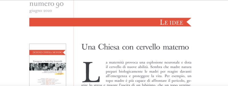 “Une Eglise au cerveau maternel“: Marta Rodriguez, responsable de la section ‘Femme’ du Dicastère pour les laïcs, la famille et la vie signe cet éditorial pour l’édition de juin 2020 du supplément de L’Osservatore Romano en italien intitulé “Donne – Chiesa – Mondo”.