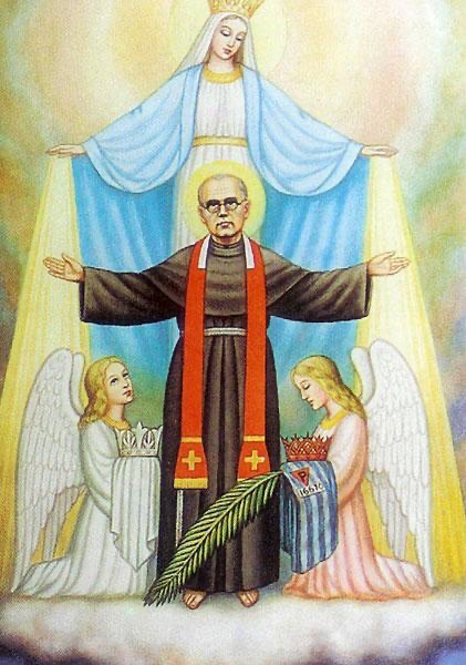 Saint Maximilien Kolbe (1894-1941) – « Manuel du Tiers-Ordre de la Pénitence d’obédience traditionnelle de notre Séraphique Père Saint François d’Assise » sous l’autorité du R. P. Antoine de Fleurance, Gardien du Couvent Saint-François à Morgon dans le département du Rhône, pages 639-640.