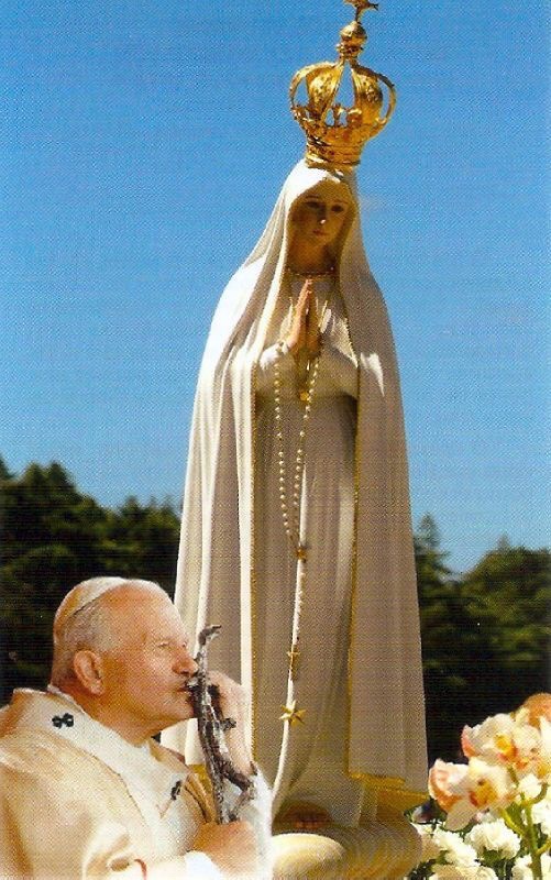 La Prière de notre Saint Pape Jean Paul II à Fatima « Ô Mère des hommes et des peuples, embrasse tous les hommes, peuples et nations que nous T’offrons et Te consacrons » :