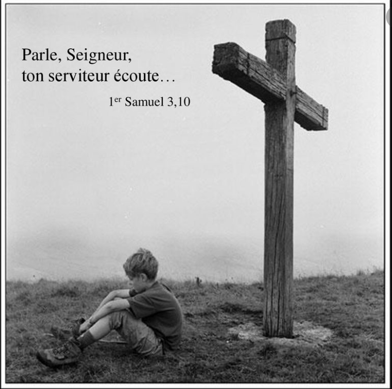 De nouveau, le Seigneur appela Samuel. Celui-ci se leva. Il alla auprès d’Éli, et il dit : « Tu m’as appelé, me voici. » Alors Éli comprit que c’était le Seigneur qui appelait l’enfant,