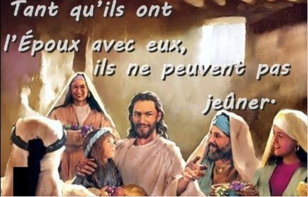 Jésus leur dit : « Les invités de la noce pourraient-ils jeûner, pendant que l’Époux est avec eux ? Tant qu’ils ont l’Époux avec eux, ils ne peuvent pas jeûner.