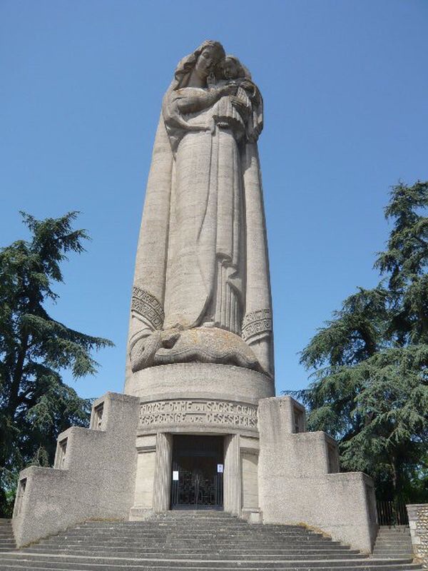 La statue monumentale de la Vierge à l’Enfant s’élève dans le hameau du Mas Rillier, sur la commune de Miribel (département de l’Ain, Centre de la France). Il s’agit de la statue religieuse la plus haute de France et d’Europe. Du haut de son 32,6 mètres, elle domine ainsi le Christ Roi des Houches (25 mètres) et la Vierge du Puy-en-Velay (16 mètres). Placée sur un socle de trois mètres de haut, elle arrive même quasiment au 38 mètres du Christ Rédempteur de Rio de Janeiro, au Brésil.
