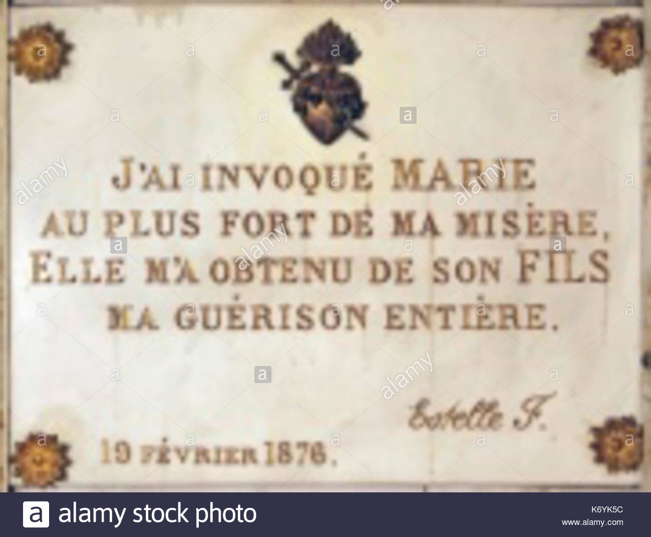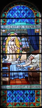 Pellevoisin est un petit village de l’Indre situé à 80 km de Tours, 35 km de Châteauroux et 12 km de Buzançais, dans le centre de la France. Le 15 février 1876, vers minuit, Estelle Faguette, née le 12 septembre 1843 à Saint-Memmie, près de Châlons-sur-Marne (France), fille d’un entrepreneur ruiné, souffrante et alitée, « voit la Vierge » à son domicile, puis à quatorze reprises jusqu’au 8 décembre 1876.