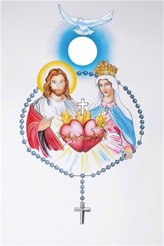 Je vous salue, ô Cœur très aimable et très aimant de Jésus et de Marie, nous vous offrons, donnons et consacrons notre cœur. Prenez-le, purifiez-le, sanctifiez-le. Afin que vous y viviez et régniez maintenant et toujours, dans les siècles des siècles.