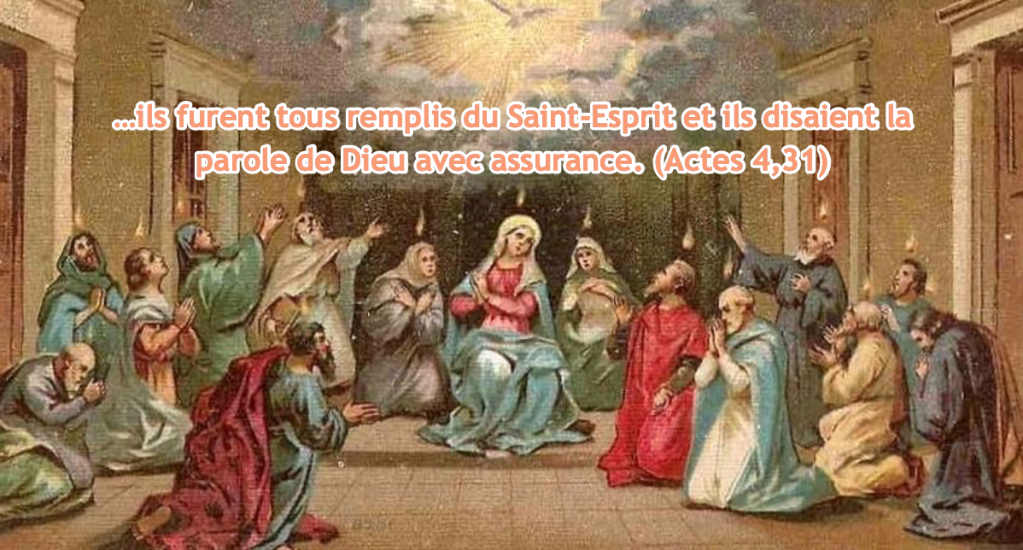 Quand ils eurent fini de prier, le lieu où ils étaient réunis se mit à trembler, ils furent tous remplis du Saint-Esprit et ils disaient la parole de Dieu avec assurance.