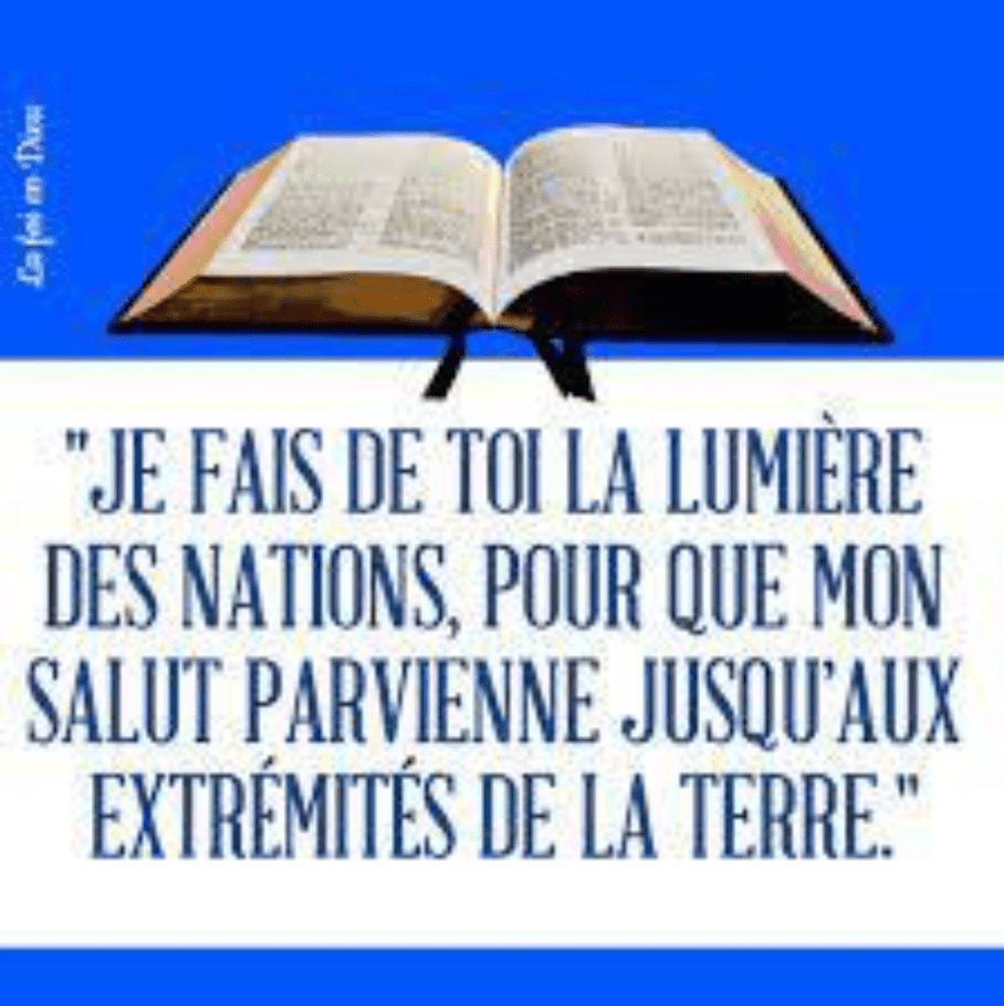 Et il dit : « C’est trop peu que tu sois mon serviteur pour relever les tribus de Jacob, ramener les rescapés d’Israël : je fais de toi la lumière des nations, pour que mon salut parvienne jusqu’aux extrémités de la terre. »
