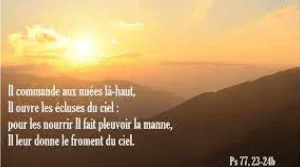 Quand ils virent cela, les fils d’Israël se dirent l’un à l’autre : « Mann hou ? » (ce qui veut dire : Qu’est-ce que c’est ?), car ils ne savaient pas ce que c’était. Moïse leur dit : « C’est le pain que le Seigneur vous donne à manger. »