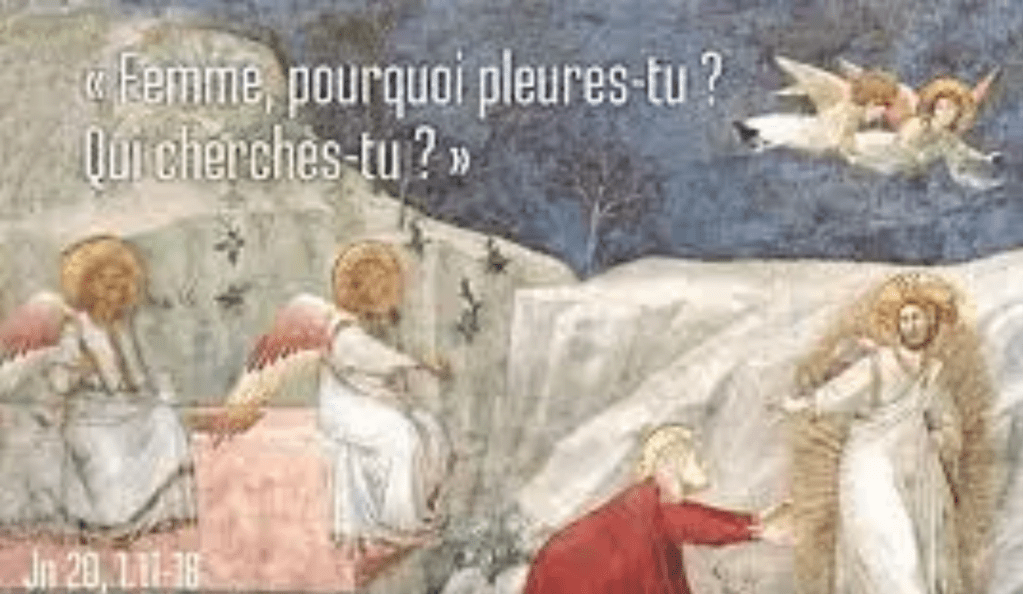 Ils lui demandent : « Femme, pourquoi pleures-tu ? » Elle leur répond : « On a enlevé mon Seigneur, et je ne sais pas où on l’a déposé. »