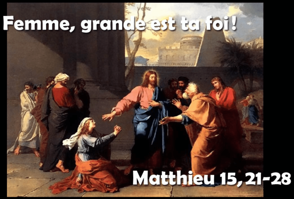 Jésus répondit : « Femme, grande est ta foi, que tout se passe pour toi comme tu le veux ! » Et, à l’heure même, sa fille fut guérie.