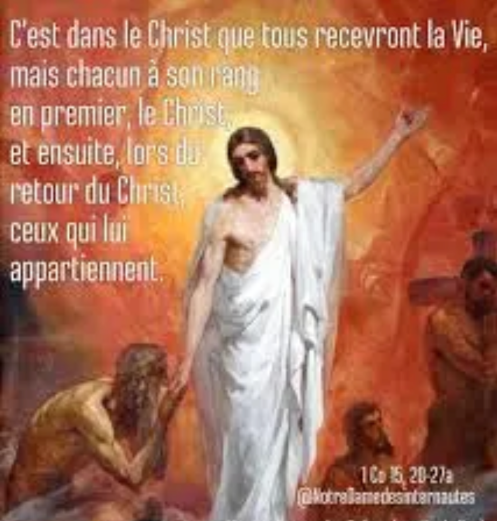 mais chacun à son rang : en premier, le Christ, et ensuite, lors du retour du Christ, ceux qui lui appartiennent.