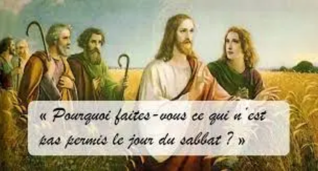Un jour de sabbat, Jésus traversait des champs ; ses disciples arrachaient des épis et les mangeaient, après les avoir froissés dans leurs mains.