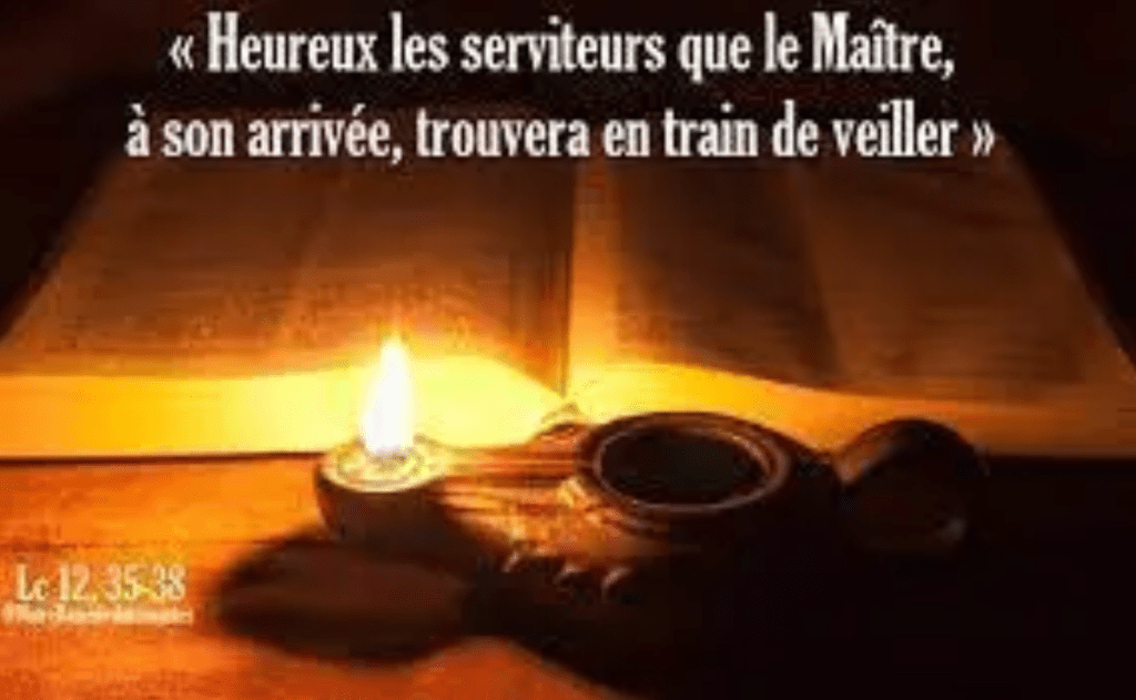 Heureux ces serviteurs-là que le maître, à son arrivée, trouvera en train de veiller. Amen, je vous le dis : c’est lui qui, la ceinture autour des reins, les fera prendre place à table et passera pour les servir.