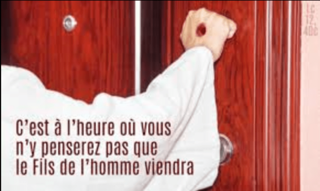 Vous aussi, tenez-vous prêts : c’est à l’heure où vous n’y penserez pas que le Fils de l’homme viendra. »