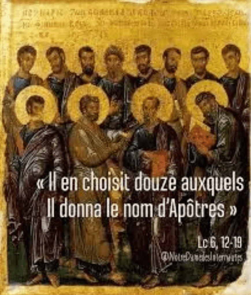 Le jour venu, il appela ses disciples et en choisit douze auxquels il donna le nom d’Apôtres :