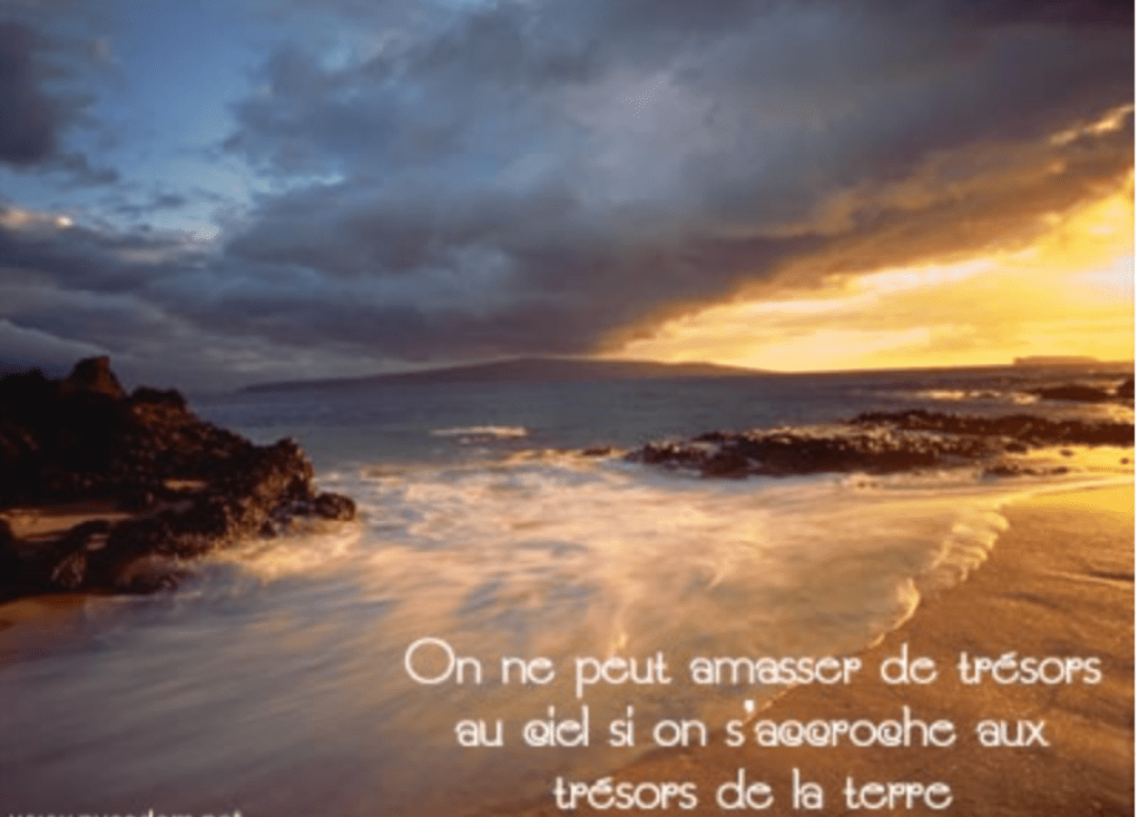 Le monde passe ; nous passons avec lui. Les rois, les empereurs, tout s’en va. On s’engouffre dans l’éternité d’où l’on ne revient plus. Il ne s’agit que d’une seule chose : sauver sa pauvre âme. Les saints n’étaient pas attachés aux biens de la terre ; ils ne songeaient qu’à ceux du ciel. Les gens du monde, au contraire, ne songent qu’au temps présent. Il faut faire comme les rois. Quand ils vont être détrônés, ils envoient leurs trésors en avant ; ces trésors les attendent. De même un bon chrétien envoie toutes ses bonnes œuvres à la porte du ciel. […] La terre est un pont pour passer l’eau ; elle ne sert qu’à soutenir nos pieds… Nous sommes en ce monde mais nous ne sommes pas de ce monde, puisque nous disons tous les jours : « Notre Père qui êtes aux cieux… » Il faut donc attendre notre récompense quand nous serons « chez nous » dans la maison paternelle.