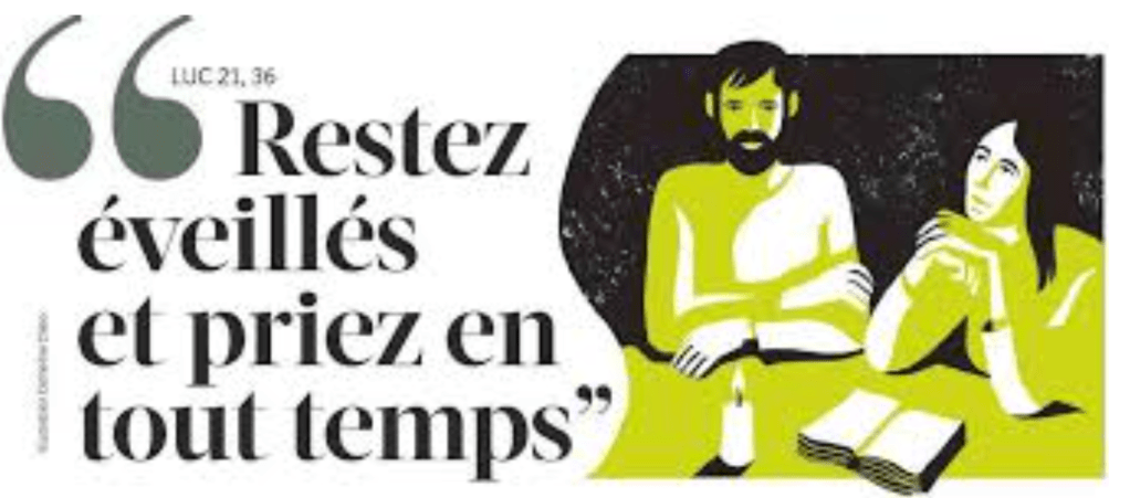 Restez éveillés et priez en tout temps : ainsi vous aurez la force d’échapper à tout ce qui doit arriver, et de vous tenir debout devant le Fils de l’homme. «
