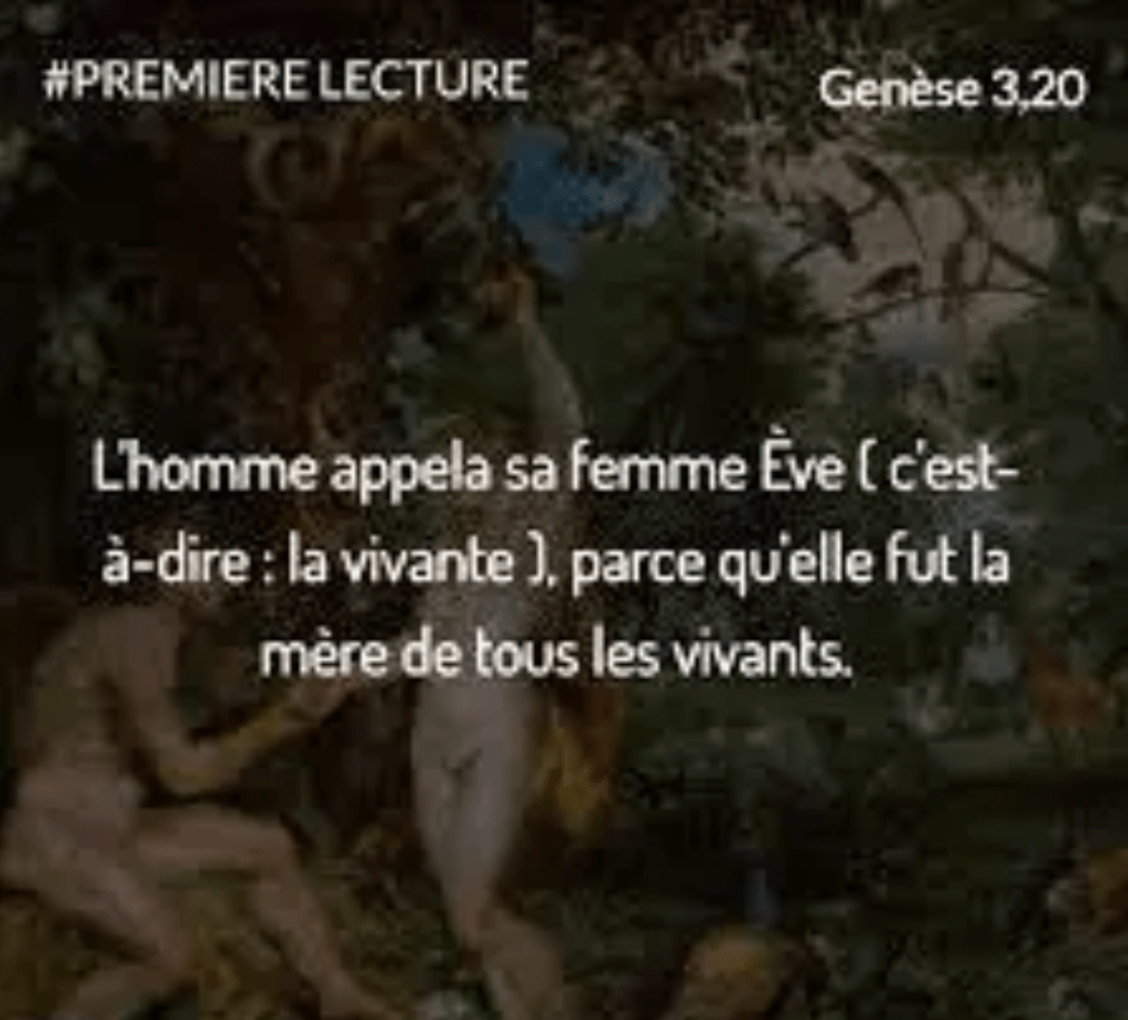 L’homme appela sa femme Ève (c’est-à-dire : la vivante), parce qu’elle fut la mère de tous les vivants.
