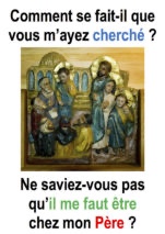 Il leur dit : « Comment se fait-il que vous m’ayez cherché ? Ne saviez-vous pas qu’il me faut être chez mon Père ? »