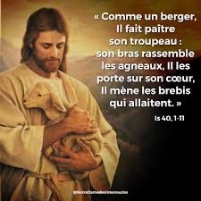 Comme un berger, il fait paître son troupeau : son bras rassemble les agneaux, il les porte sur son cœur, il mène les brebis qui allaitent.