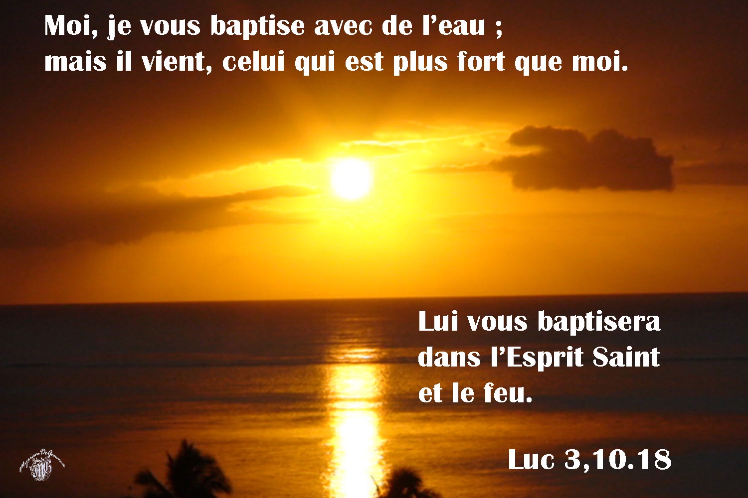 Jean s’adressa alors à tous : « Moi, je vous baptise avec de l’eau ; mais il vient, celui qui est plus fort que moi. Je ne suis pas digne de dénouer la courroie de ses sandales. Lui vous baptisera dans l’Esprit Saint et le feu.
