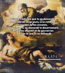 Donne à ton serviteur un cœur attentif pour qu’il sache gouverner ton peuple et discerner le bien et le mal ; sans cela, comment gouverner ton peuple, qui est si important ? »