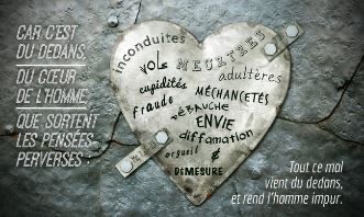 Car c’est du dedans, du cœur de l’homme, que sortent les pensées perverses : inconduites, vols, meurtres,