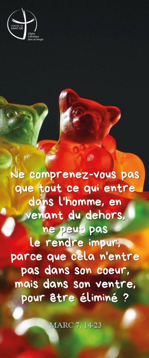Rien de ce qui est extérieur à l’homme et qui entre en lui ne peut le rendre impur. Mais ce qui sort de l’homme, voilà ce qui rend l’homme impur. »