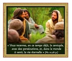 sans qu’il reçoive, en ce temps déjà, le centuple : maisons, frères, sœurs, mères, enfants et terres, avec des persécutions, et, dans le monde à venir, la vie éternelle.