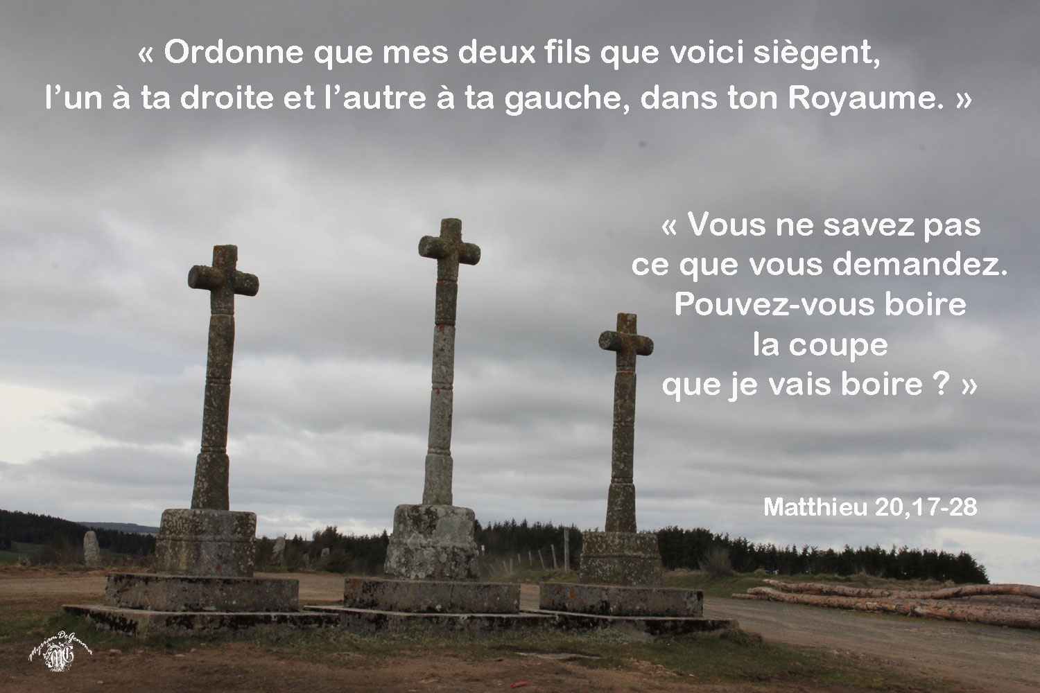 Jésus lui dit : « Que veux-tu ? » Elle répondit : « Ordonne que mes deux fils que voici siègent, l’un à ta droite et l’autre à ta gauche, dans ton Royaume. »