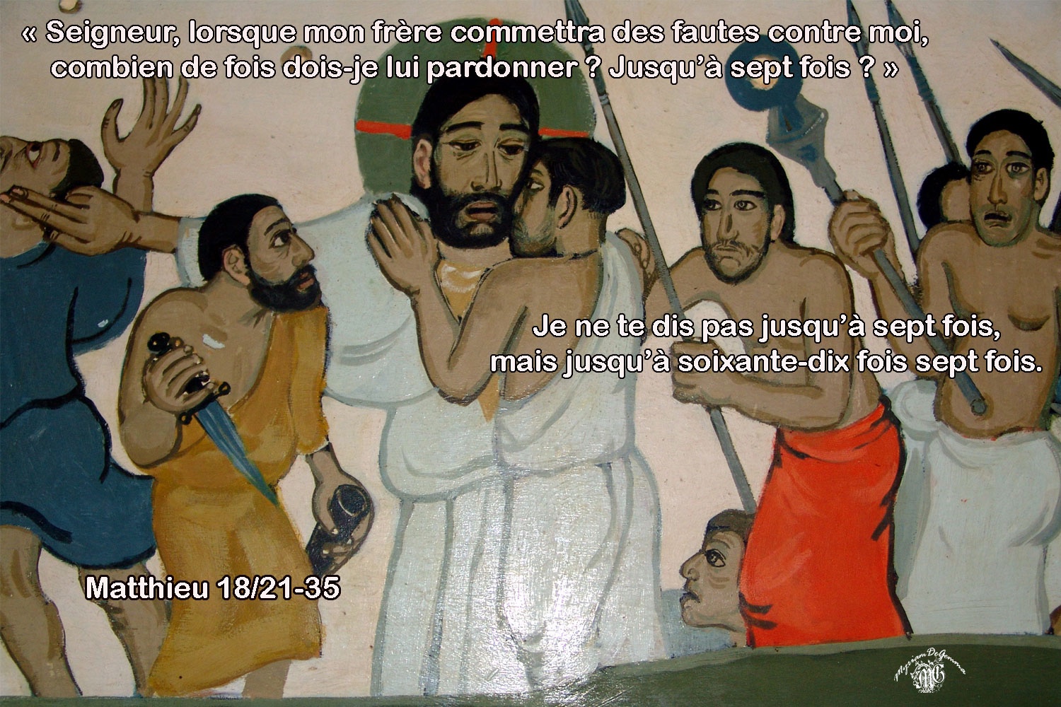 Jésus lui répondit : « Je ne te dis pas jusqu’à sept fois, mais jusqu’à soixante-dix fois sept fois.