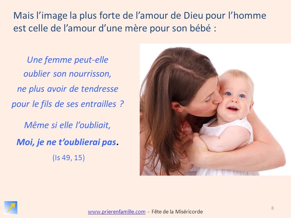 Une femme peut-elle oublier son nourrisson, ne plus avoir de tendresse pour le fils de ses entrailles ? Même si elle l’oubliait, moi, je ne t’oublierai pas, – dit le Seigneur.