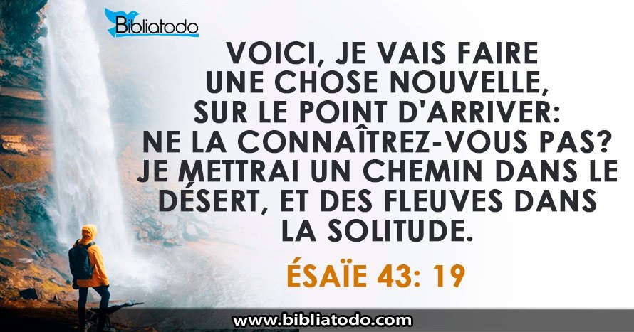 Voici que je fais une chose nouvelle : elle germe déjà, ne la voyez-vous pas ? Oui, je vais faire passer un chemin dans le désert, des fleuves dans les lieux arides.