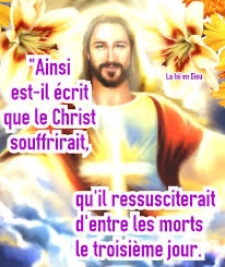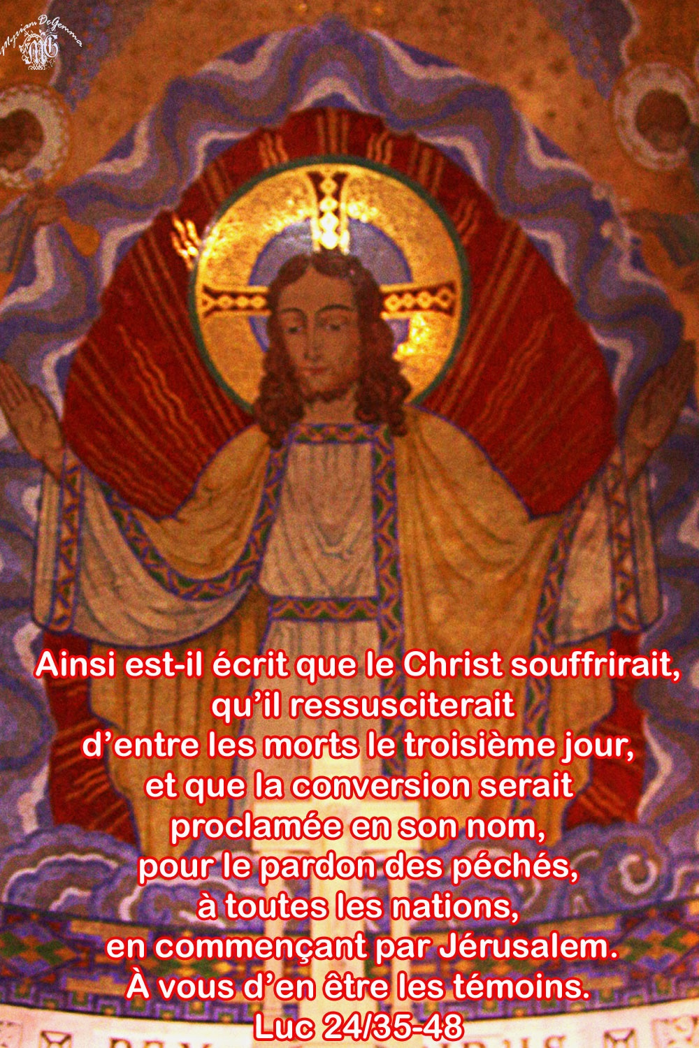 Il leur dit : « Ainsi est-il écrit que le Christ souffrirait, qu’il ressusciterait d’entre les morts le troisième jour,