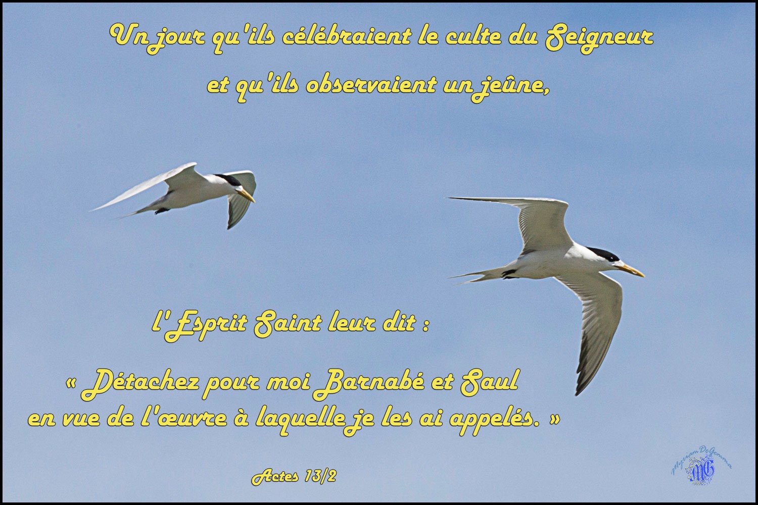 Un jour qu’ils célébraient le culte du Seigneur et qu’ils jeûnaient, l’Esprit Saint leur dit : « Mettez à part pour moi Barnabé et Saul en vue de l’œuvre à laquelle je les ai appelés. »