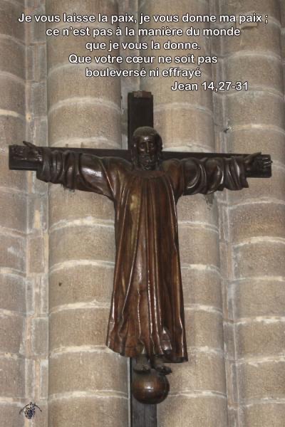 En ce temps-là, Jésus disait à ses disciples : « Je vous laisse la paix, je vous donne ma paix ; ce n’est pas à la manière du monde que je vous la donne. Que votre cœur ne soit pas bouleversé ni effrayé.