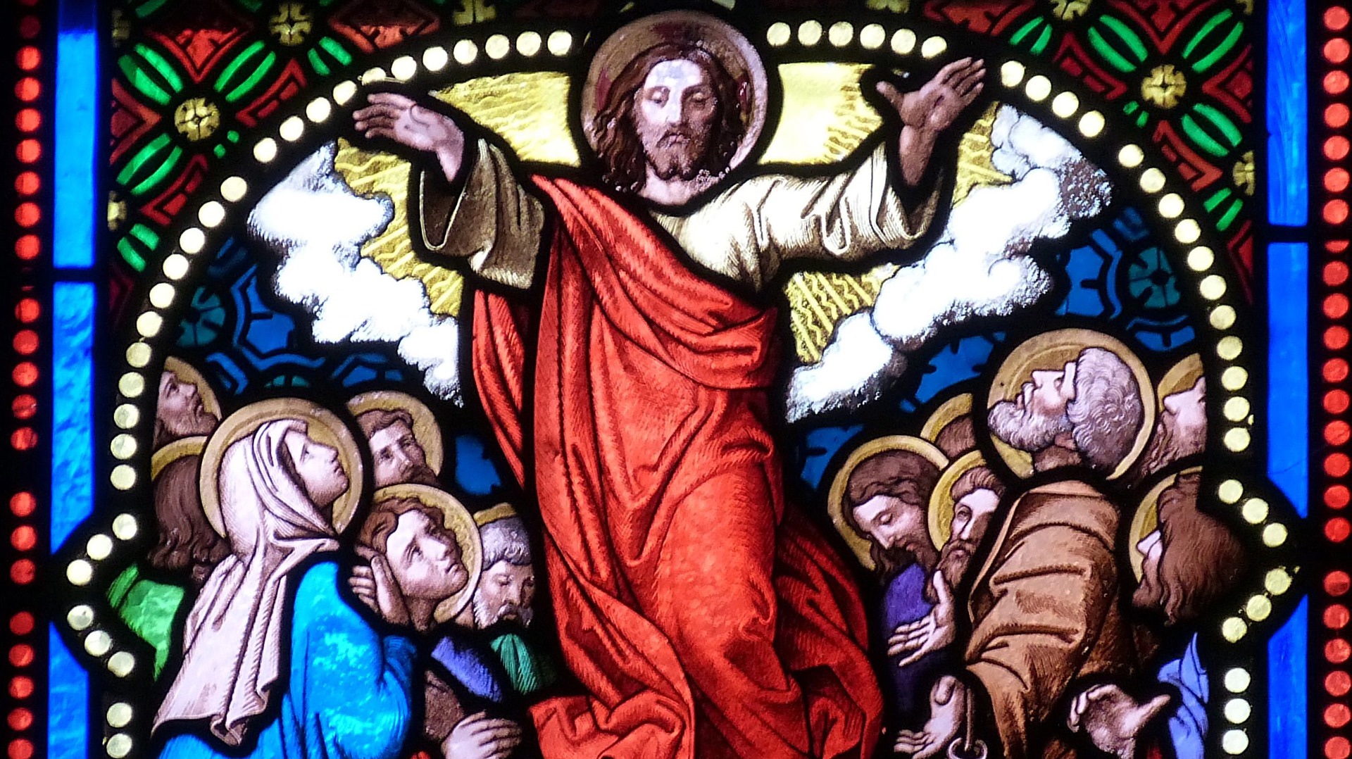 En ce jour de l’Ascension, nous célébrons le Christ ressuscité qui entre dans la gloire du Père. C’est sa dernière apparition à ses disciples. Désormais, il n’est plus visible sur la terre, mais il reste présent “tous les jours, jusqu’à la fin du monde”. Les apôtres sont pleins de joie car ils sont habités par la présence du Christ. De retour à Jérusalem, ils sont tous les jours au temple à bénir Dieu. Le soir de Pâques, Jésus leur avait donné le souffle de l’Esprit Saint. Au jour de la Pentecôte, ce souffle les transfigurera en témoins inlassables du Christ ressuscité. Avec eux, c’est le temps de l’Église qui commence.