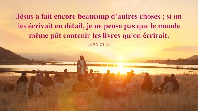 Il y a encore beaucoup d’autres choses que Jésus a faites ; et s’il fallait écrire chacune d’elles, je pense que le monde entier ne suffirait pas pour contenir les livres que l’on écrirait.