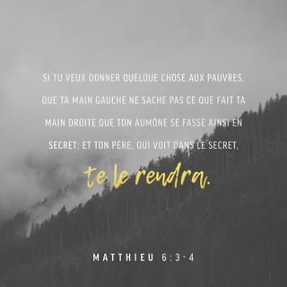 Mais toi, quand tu fais l’aumône, que ta main gauche ignore ce que fait ta main droite,